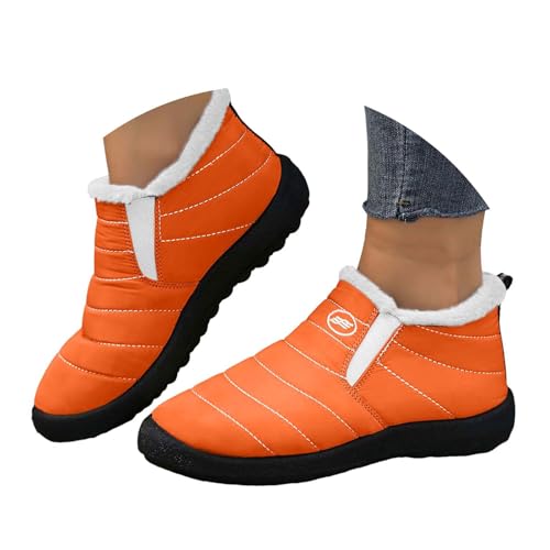Générique Bottes bout rond pour femmes, bottes en coton peluche, couleur unie, imperméables chaudes, grande taille Range Chaussures Placard Extensible (Orange, 39)