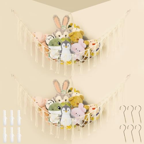 Beinou Rangement Peluche Grande Jouet Hamac Animaux Organiseurs Chambre Enfant Filet Suspendu Rangement Range Doudou Hamac Jouet en Macramé