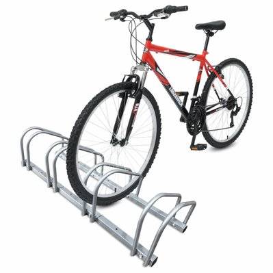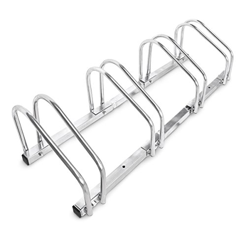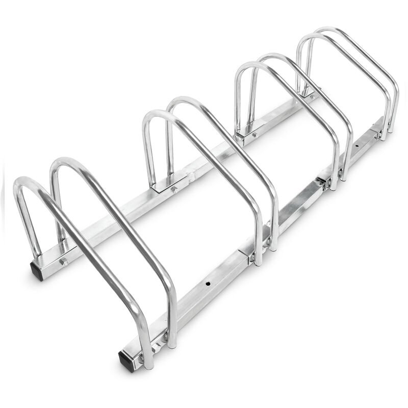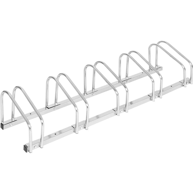 ANDRYS - Râtelier range vélo au sol pour extérieur et intérieur - Porte-vélos pour 5 vélos, électrozingué, râtelier range-vélo argenté avec embouts en pvc noir - 1205B