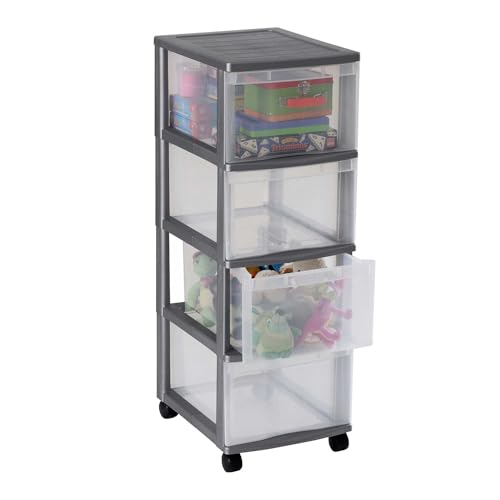 Iris Ohyama, Tour de rangement à Roulettes en Plastique, 4 Grands Tiroirs, Blanc, Ouverture Facile, Meuble de Rangement, Papeterie, pour Chambre, Salle de Bain, École & Bureau, Sans BPA, DDDC-304