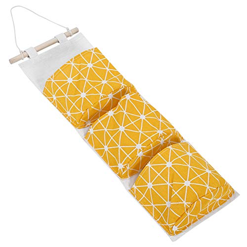 2 pièces Sac de Rangement Suspendu, Panier à Suspendre Mur avec 3 Poches Sac Organisateur Pochette de Rangement avec Poteau et Corde pour Suspendre Pratique pour Chambre Salle de Bain Cuisine(jaune)