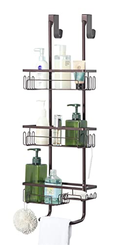 Duwee Panier de Douche à Suspendre sur Porte à 3 Niveaux, Panier de Rangement de Salle de Bain Antirouille Grand, Etagere Douche sur Porte à Suspendre Non Percé, Pour Grandes Bouteilles,Noir