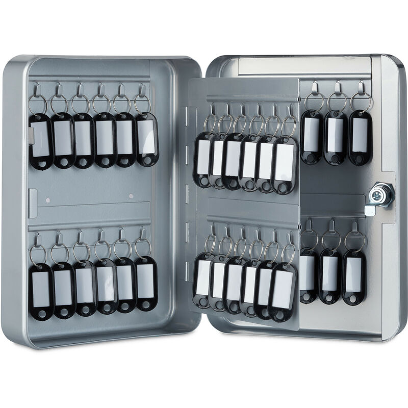Relaxdays - Boîte à clés, Armoire à clef murale, métal, Rangement 48 crochets, garage sécurité 25x18x7,5 cm, gris