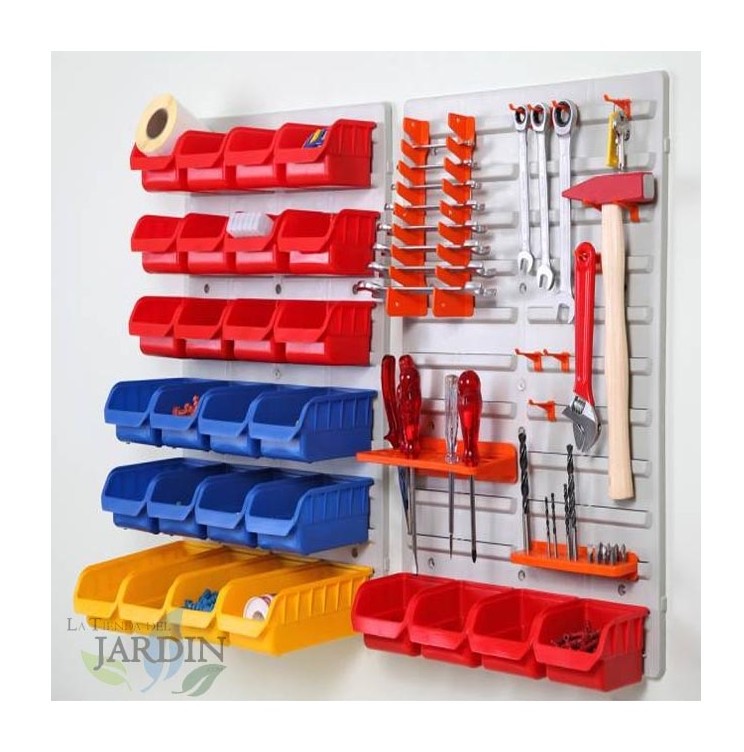 Plastique Panneau Mural Porte-Outils 28 boîtes, Système de Stockage - Rangement Outil - Armoire Garage - 40x59 cm