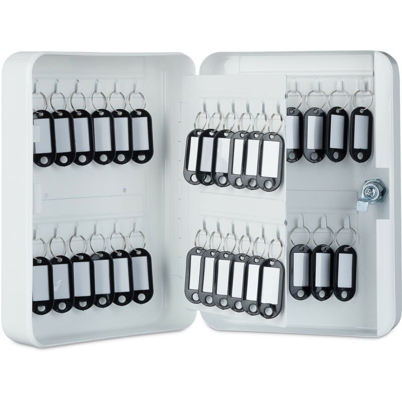 Relaxdays 10025073_49 Boîte à clés, Armoire à Clef Murale, métal, Rangement 48 Crochets, Garage sécurité 25x18x7,5 cm, Blanc, 5cm