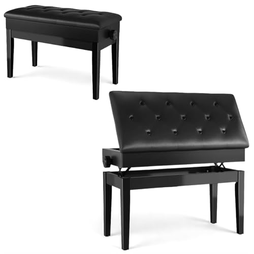 Clevich Tabouret de Piano réglable en Hauteur 48-58 cm, Banc de Piano Double, avec Espace de Rangement, Banquette Piano avec Coussin en Cuir PU, Charge maximale : 200 kg, Noir
