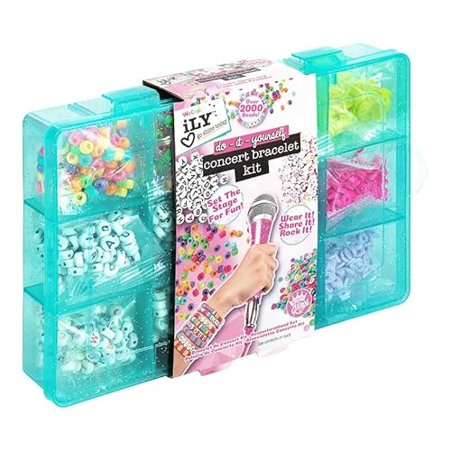 ILY Kit de bracelets de concert à faire soi-même, pour faire plus de 2 000 bracelets de perles avec cordons élastiques et étui de rangement, kit de bricolage de bijoux pour filles, parfait pour les