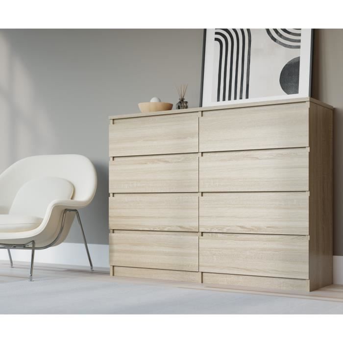 Commode chêne-Sonoma Mat avec 8 tiroirs 120 cm, Meuble Rangement Chambre Adulte