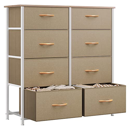 YITAHOME Commode 8 tiroirs, Commode Chambre Adulte en Tissu, Meuble de Rangement Chambre, Cadre Stable en Métal, Commode Chambre Enfant pour Armoire, Salon, Chambre, Couloir, Kaki
