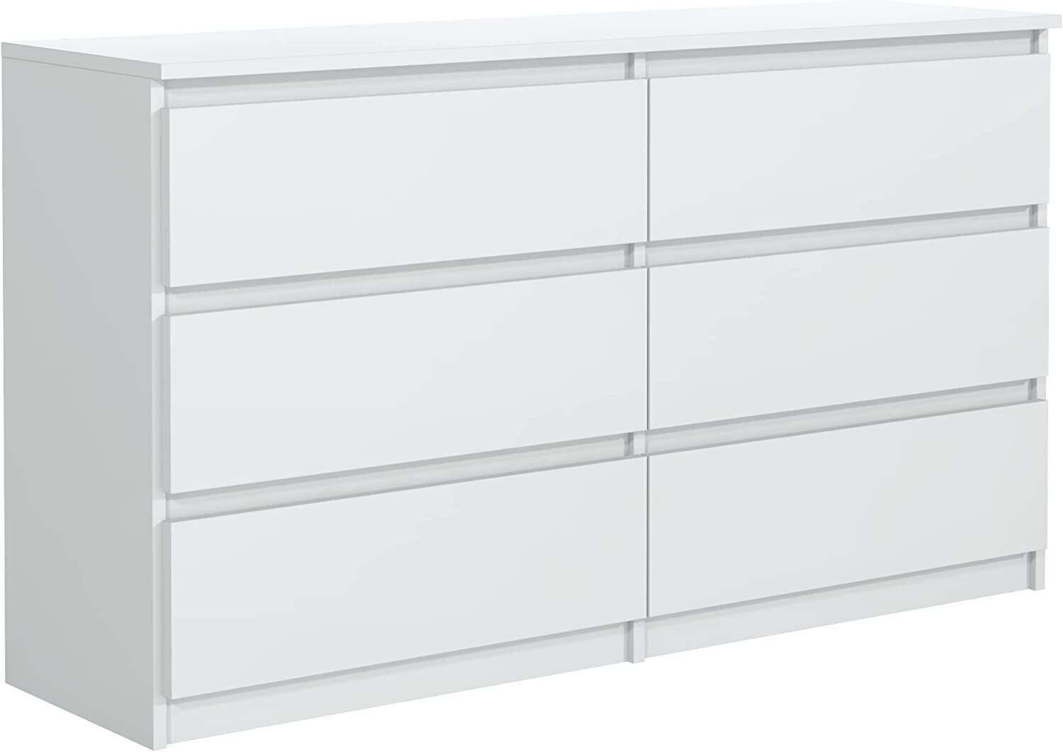 Commode Blanc Mat avec 6 tiroirs 120 cm - Meuble Rangement, Chambre Adulte