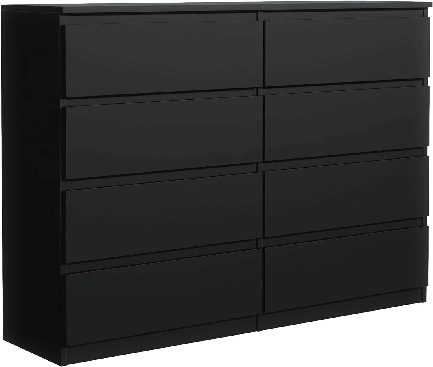 Commode Noir Mat avec 8 tiroirs 140 cm, Meuble Rangement Chambre Adulte