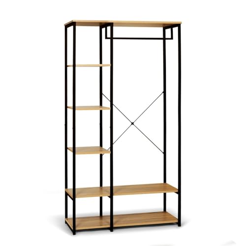 FACILITYS - Dressing Chambre Adulte 167 x 90 x 40 cm - Portant à Vêtements 6 Étagères - Armoire Penderie Tringle 53 cm - Design Épuré Métal Noir Effet Bois - Rangement Vêtements Pratique