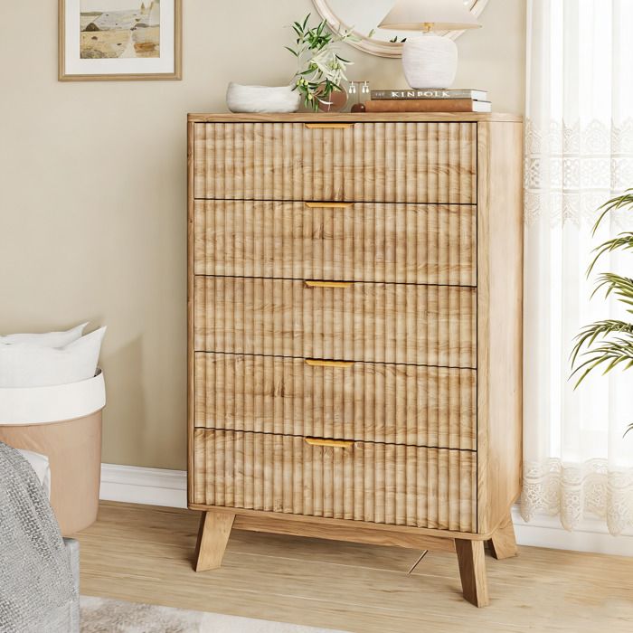 Commode 5 tiroirs - Commode Bois de qualité et Anti-basculement -Meuble Rangement Chambre Adulte Salon - 73x40x108cm