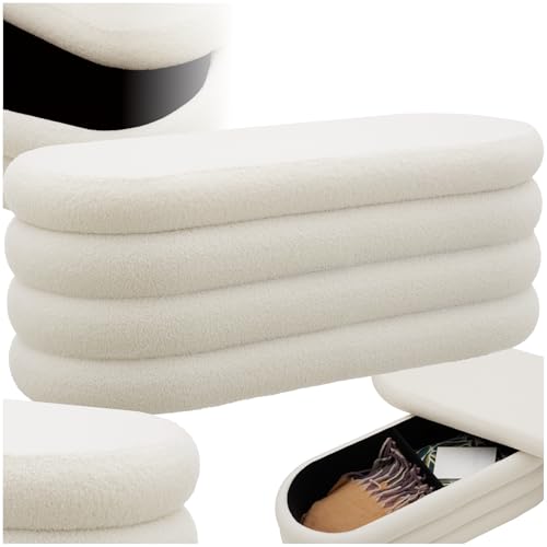 TecTake® Banc de Rangement Bout de lit Coffre Bouclette 110x45x42cm Banc Entree Pouf Chambre Dressing Chambre Adulte Repose Pied Tabouret Coiffeuse Meuble Salon Coffre a Jouet Meuble Rangement Enfant