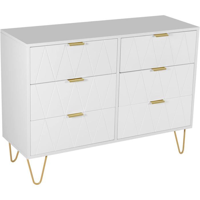 GOOBUY Commode avec 6 Tiroirs Meuble de Rangement Chambre Enfant/Adulte 100 x 34 x 73cm Style Scandinave Elégant Blanc