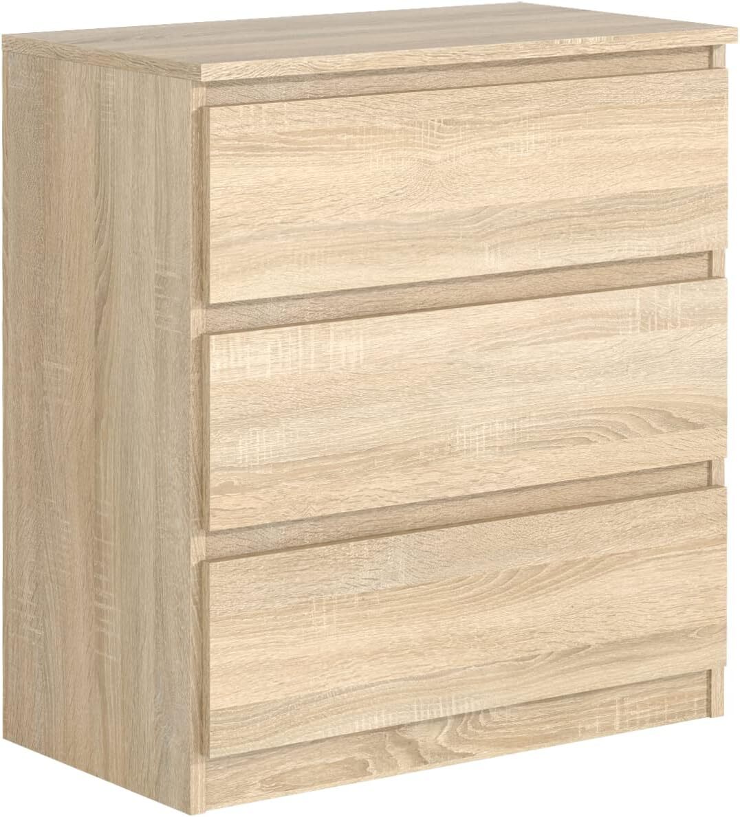Commode Chêne Sonoma Mat avec 3 tiroirs 70 cm, Meuble Rangement Chambre Adulte