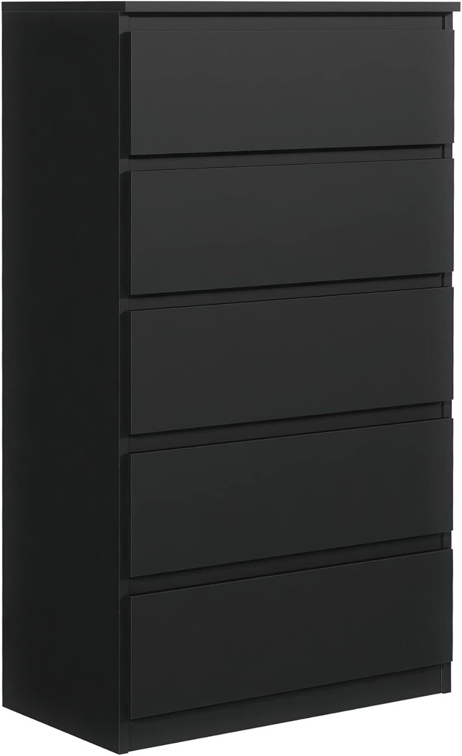 Commode Noir Mat avec 5 tiroirs 70 cm Meuble Rangement, Commode Chambre Adulte
