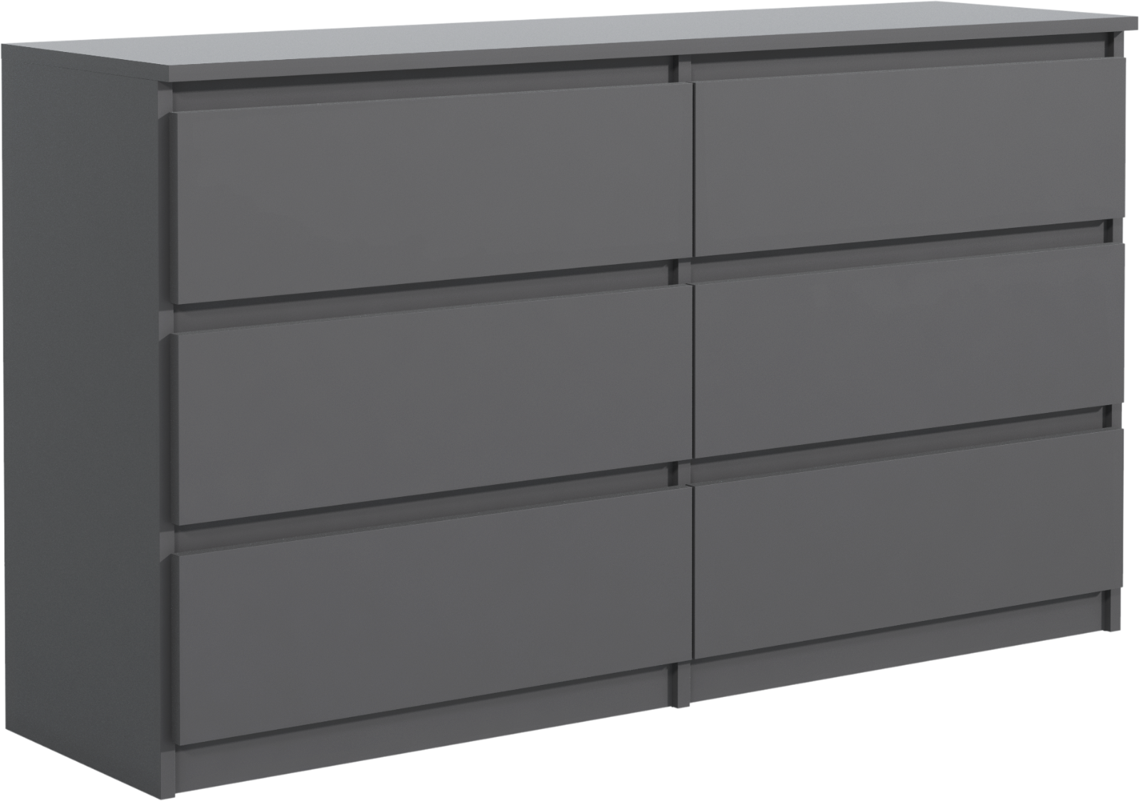 Commode Anthracite Mat avec 6 tiroirs 140 cm - Meuble Rangement, Chambre Adulte