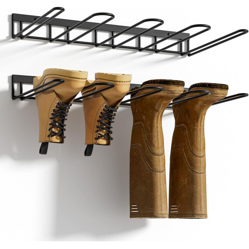 Support Mural pour Bottes en Caoutchouc pour 4 Paires – Rangement Chaussure Mural en Métal Robuste pour Bottes Hautes, Intérieur et Extérieur,
