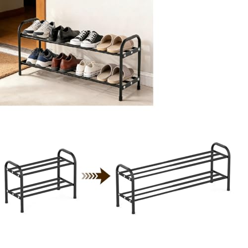 YAMAIDUO Étagère à Chaussures 3 Niveaux, Extensible Porte Chaussures en Métal Réglable de 43 à 78 cm, Rangement Chaussure pour 6-12 Paires de Shoes, Shoe Rack pour Entrée Placard Garage Couloir