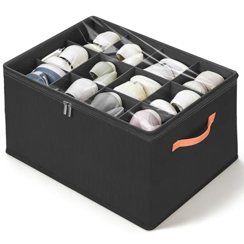 StorageWorks Organisateur de chaussures pour placard, boîte de rangement chaussure pour 16 paires, boîte en tissu avec couvercle transparent, conteneurs de rangement pour chaussures d'armoire, gris