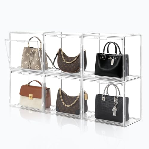 Cutora Lot de 6 organiseurs de rangement transparents pour sac à main en plastique acrylique pour placard, sac à main, chaussures, jouets, boîte de rangement empilable avec porte magnétique