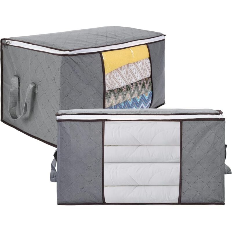 Sac De Rangement Pour Couette En Épais Non-Tissé Sac De Rangement Sous Lit Pour Édredons Couvertures Oreillers Jouets Vestes Vêtements, Gris, 60 x 43
