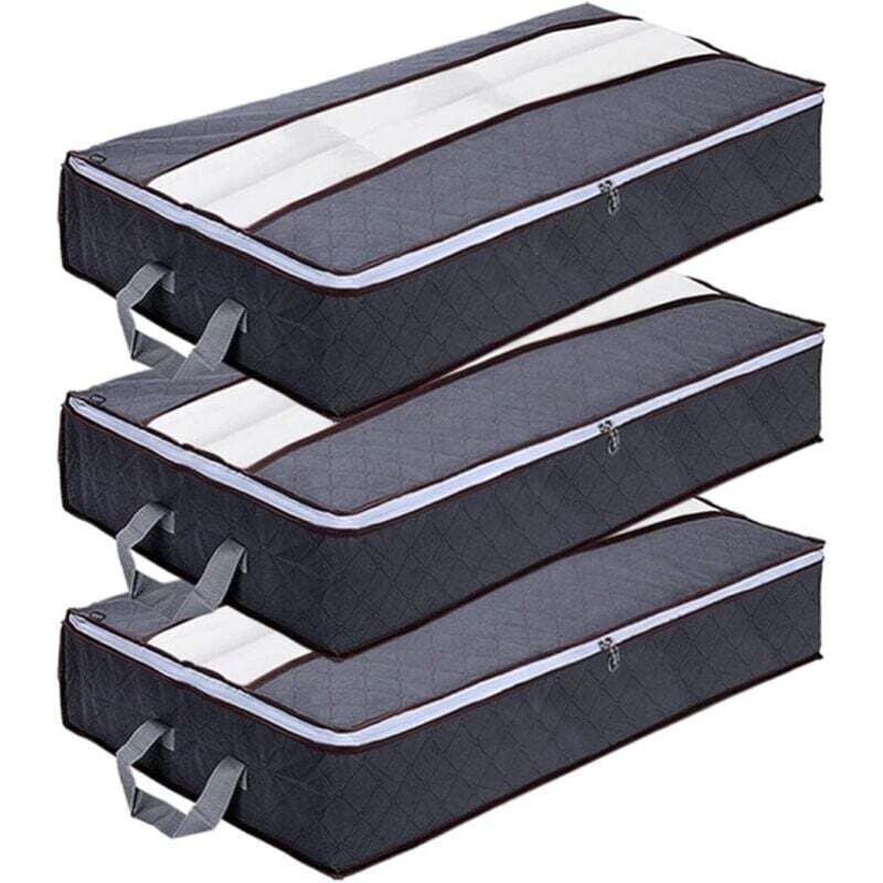 Lot de 3 Sac de Rangement Vetement 35L Bote de Rangement Sous lit Pliable Housse Rangement Couette Organisateur de Placard PZCC
