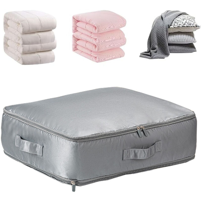 Sac de rangement pour couette, 60 x 54 x 42 cm, gris, organisateur de literie auto-compressant pour couettes, vêtements et couvertures, gain de place
