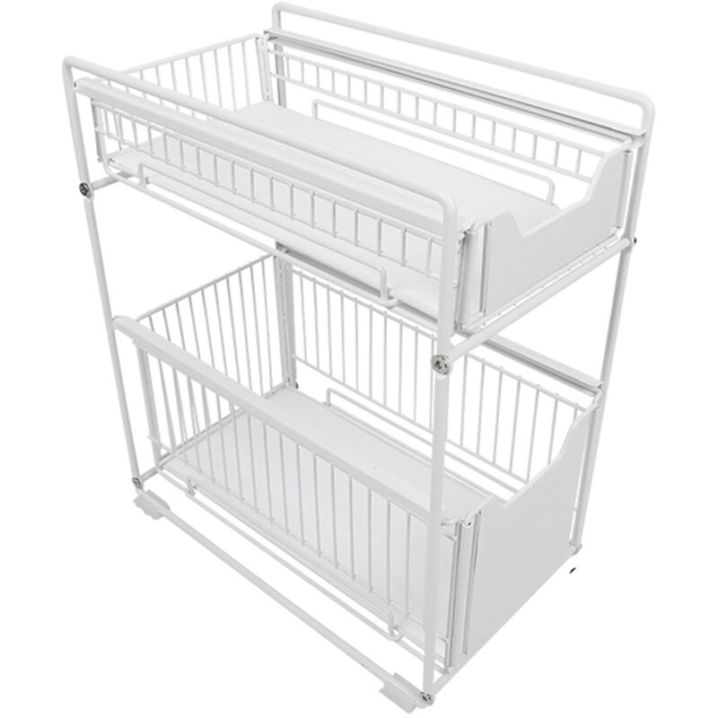 BAKAJI Lot de 2 organiseurs de sous-sol pour salle de bain et cuisine avec tiroir coulissant, étagère de panier coulissante, 2 étagères, étagère sous évier de rangement amovible (blanc)