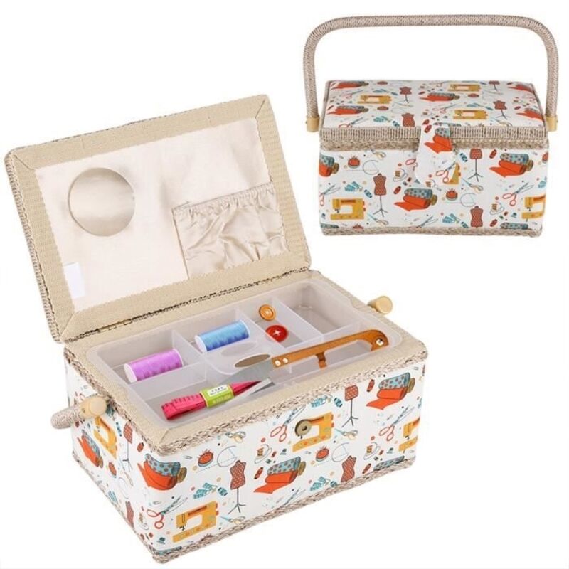 Hobby Gift Boîte de rangement moyenne pour couture et loisirs créatifs Bois/Tissu, Machines à coudre