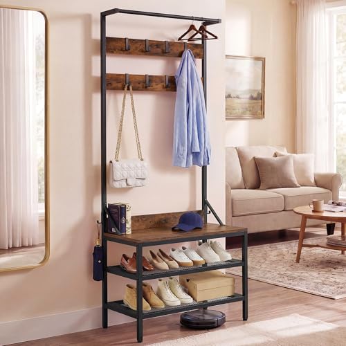 YITAHOME Porte-manteau industriel avec rangement de chaussures, 2 étagères, porte-manteau industriel avec 9 crochets, pour couloir, salon, chambre à coucher, cadre en métal