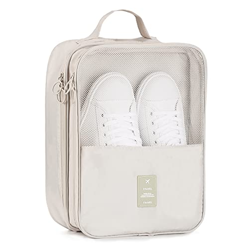 Hezelf Sac à Chaussures de Voyage, Pochette de Rangement pour Chaussures de Voyage et Usage Quotidien, Valise de Voyage, Organisateur de Chaussures, étanche, Beige-L, Large-Beige, Voyage et