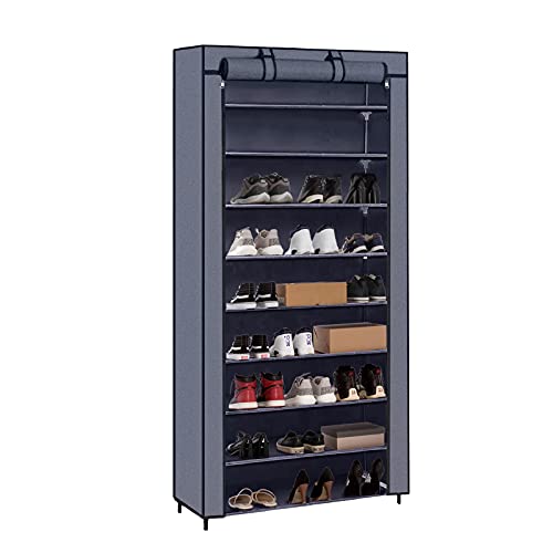 Mondeer Armoire à Chaussures 9 Couches Etagères de Rangement pour 45 Paires de Chaussures Armoire en Tissus Rangement de Chaussures Étanche Étagères à Chaussures Gris 88 * 28 * 160cm (avec Housse)