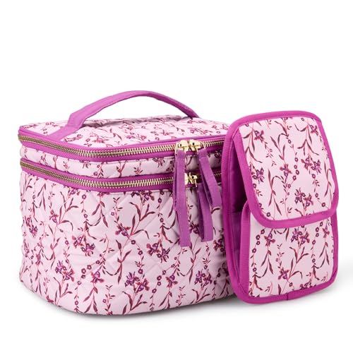 OCHEAL Trousse de Maquillage Rose, Sac de Rangement de Maquillage de Voyage, Grande capacité pour Femmes, Grande Trousse de Toilette de Voyage pour Filles avec Fente pour Brosse et séparateur