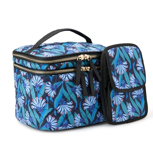 Amazon Essentials Mallette multifonction matelassée avec rangement pour pinceaux de maquillage Femme, Motif Floral Bleu., Taille unique