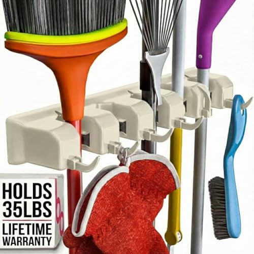 Support mural pour balais et outils de jardin, rangement de placard, étagère de cuisine, organisation de la maison et de garage pour poignées de râteau ou de serpillère jusqu'à 3,2 cm, cintre plus 6