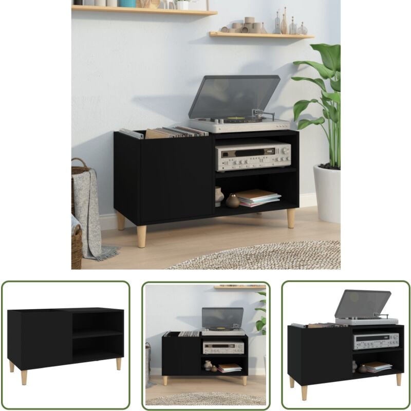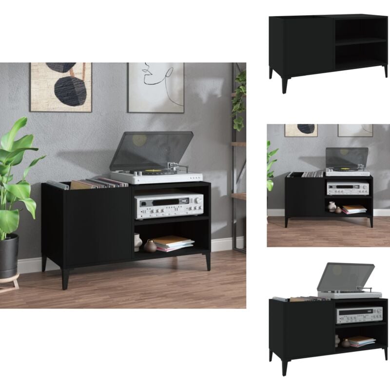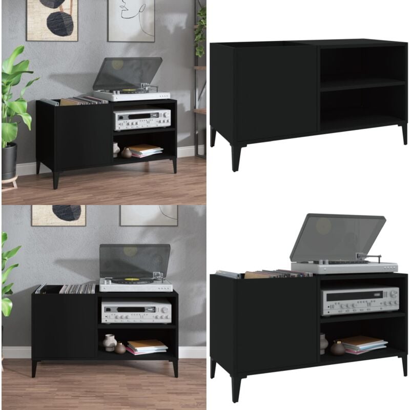 The Living Store - Armoire à disques noir 84,5x38x48 cm bois d'ingénierie - Meuble à Disques - Armoire Vinyle - Rangement Disque - Étagère Musique