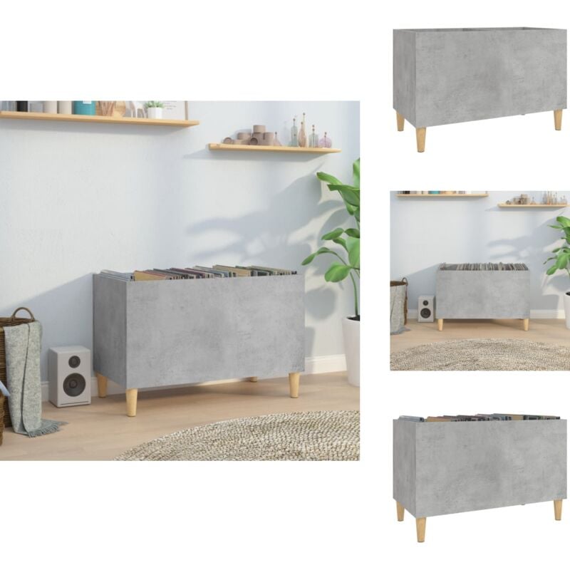 Boîte de rangement de vinyles Gris béton 71x34x36 cm - Boîte De Rangement Vinyl - Rangement Disque Vinyle - Meuble Rangement Vinyle - Boitier Lp