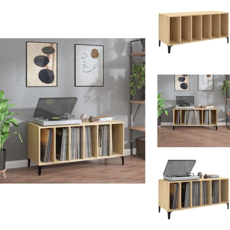 LAPOOH Armoire à disques chêne sonoma 100x38x48 cm bois d'ingénierie Chaine Hifi Avec Platine Vinyle,Rangement Disque Vinyle