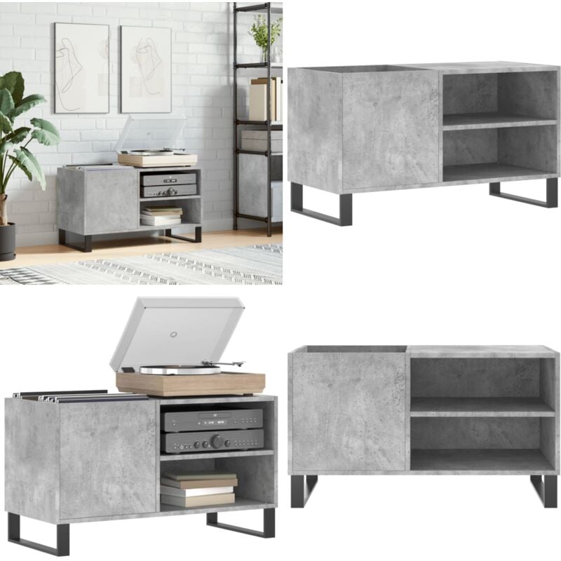 Armoire à disques gris béton 85x38x48 cm bois d'ingénierie - Meuble à Disques - Armoire à Vinyle - Rangement Disque Vinyle - Étagère Musique