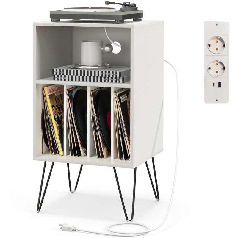 GOPLUS Petit Meuble de Rangement pour Disque Vinyle avec Station de Charge-4 Compartiments-Pieds Surélevés 43x345x675CM Marron