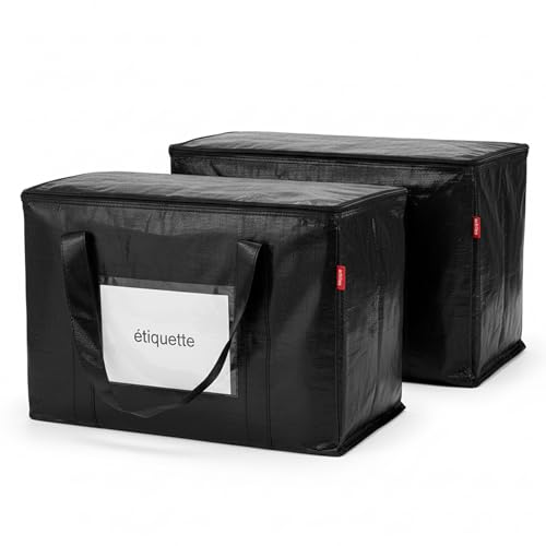 achilles Rangement Papier Administratif - Boite Rangement Dossier 50L - 2 Pièces Range Document Bureau avec Fenêtre Transparente et Fermeture Éclair - 50x33x30cm - Noir