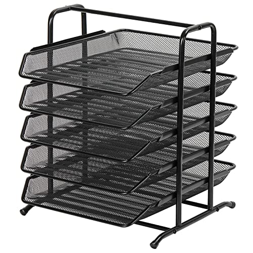 5 Niveaux Corbeilles à Courrier, Bac à Courrier Empilable, A4 Organisateur de Bureau Maille Métallique, Plateau de Papier, Banette de Rangement Bureau Range Document Bureau Porte-Document Papier