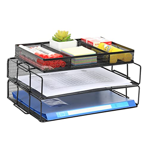 4 Niveaux Corbeilles à Courrier, Bac à Courrier Empilable, A4 Organisateur de Bureau Maille Métallique, Plateau de Papier, Banette de Rangement Bureau Range Document Bureau Porte-Document Papier