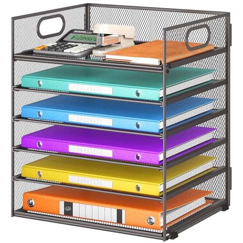 VITVITI 6 Niveaux Organisateur de Bureau Maille Métallique, Rangement de Papier avec Poignée, Banette de Rangement Bureau Corbeille a Courrier Range Document Bureau, Noir