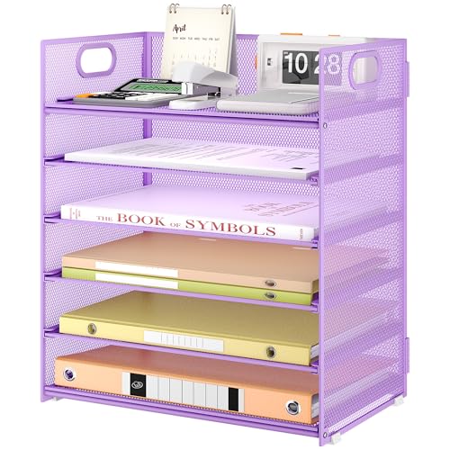 VITVITI 6 Niveaux Organisateur de Bureau Maille Métallique, Rangement de Papier avec Poignée, Banette de Rangement Corbeille a Courrier Document Bureau, Violet