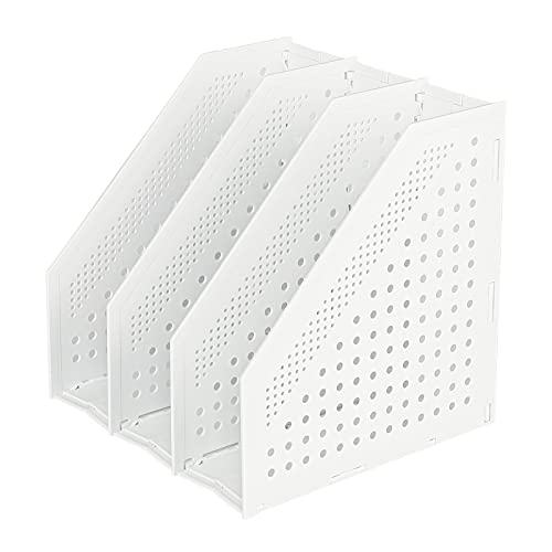 EasyPAG Lot de 3 Métal Porte Revue Vertical Corbeilles à Courrier A4 Banette de Rangement Bureau Organisateur de Magazine Range Document Bannette Papier,Blanc