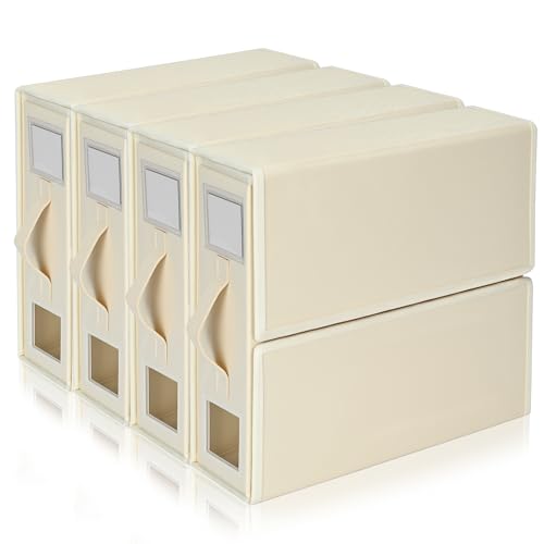 BHSMLQ Lot de 4 organiseurs de draps de lit, bacs de rangement pliables en lin avec 2 fenêtres visuelles et poignée, boîte de rangement pour draps et vêtements (blanc), BHSMLQ-UK-9