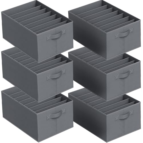 BIGLUFU Boîte Rangement Vetement 6Pcs Pliable Organisateur Tiroir Rangement Armoire Rangement Vetement Dressing pour Jean, Pantalon, Leggings, T-shirts, Chandail, 5 Grilles